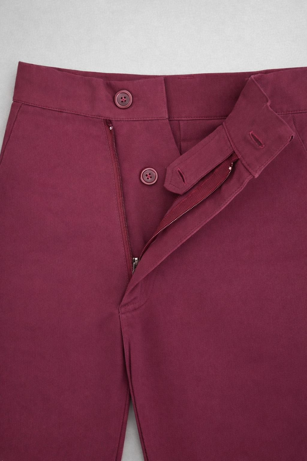 • Button closure with zip fly