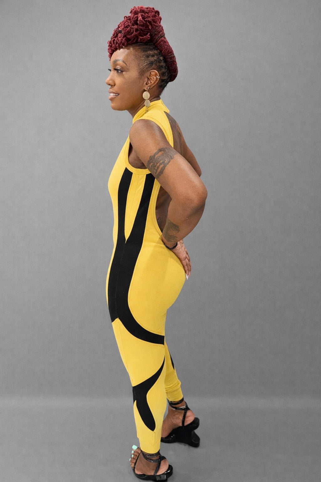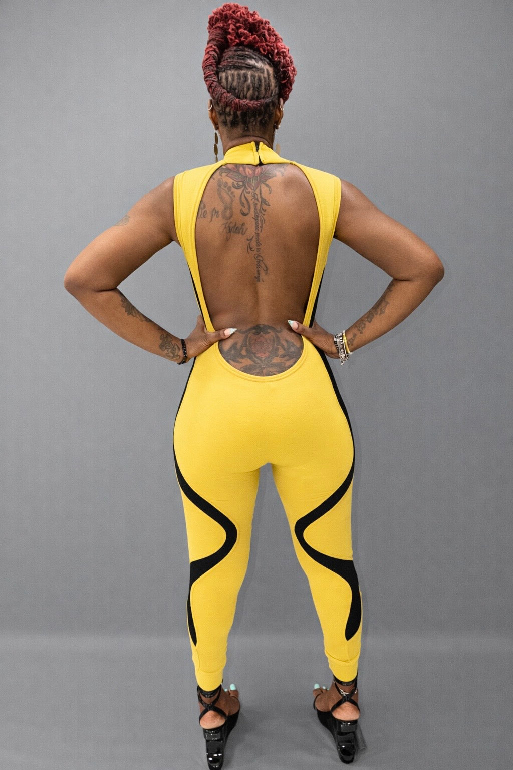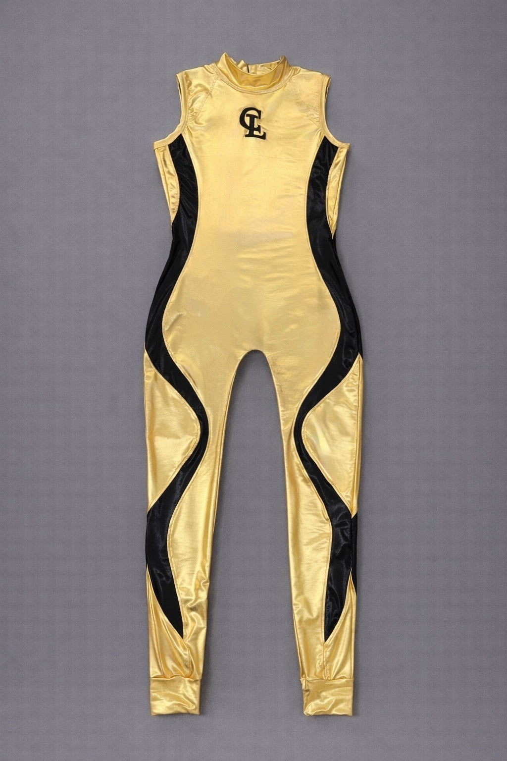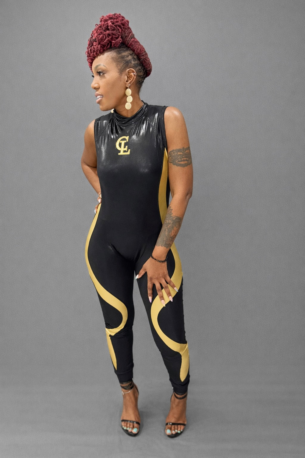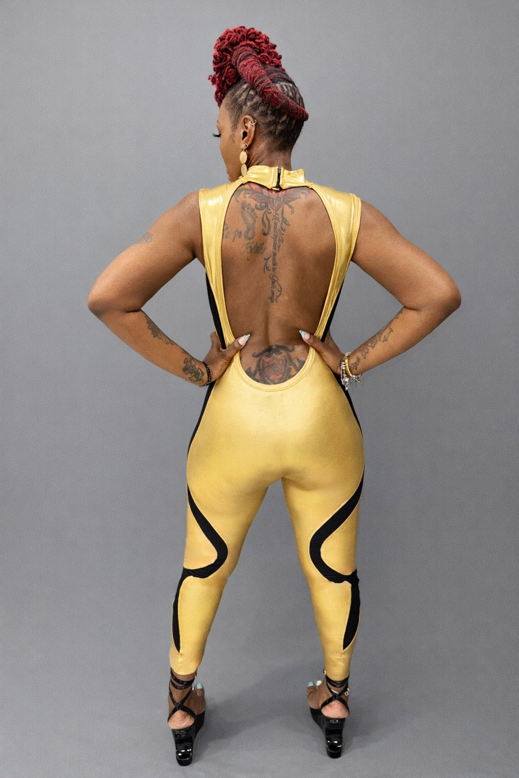 Command the room. The Empress Jumpsuit is a bold, sculptural statement designed to celebrate feminine power. Featuring a sleek mock neckline and an open oval back, this jumpsuit contours the body with precision while allowing fluid movement. Offered in two striking colorways and two fabric options, every Empress Jumpsuit delivers stretch, shine, and authority.
