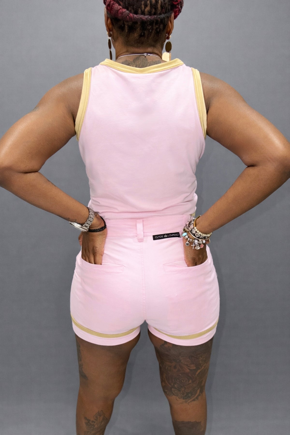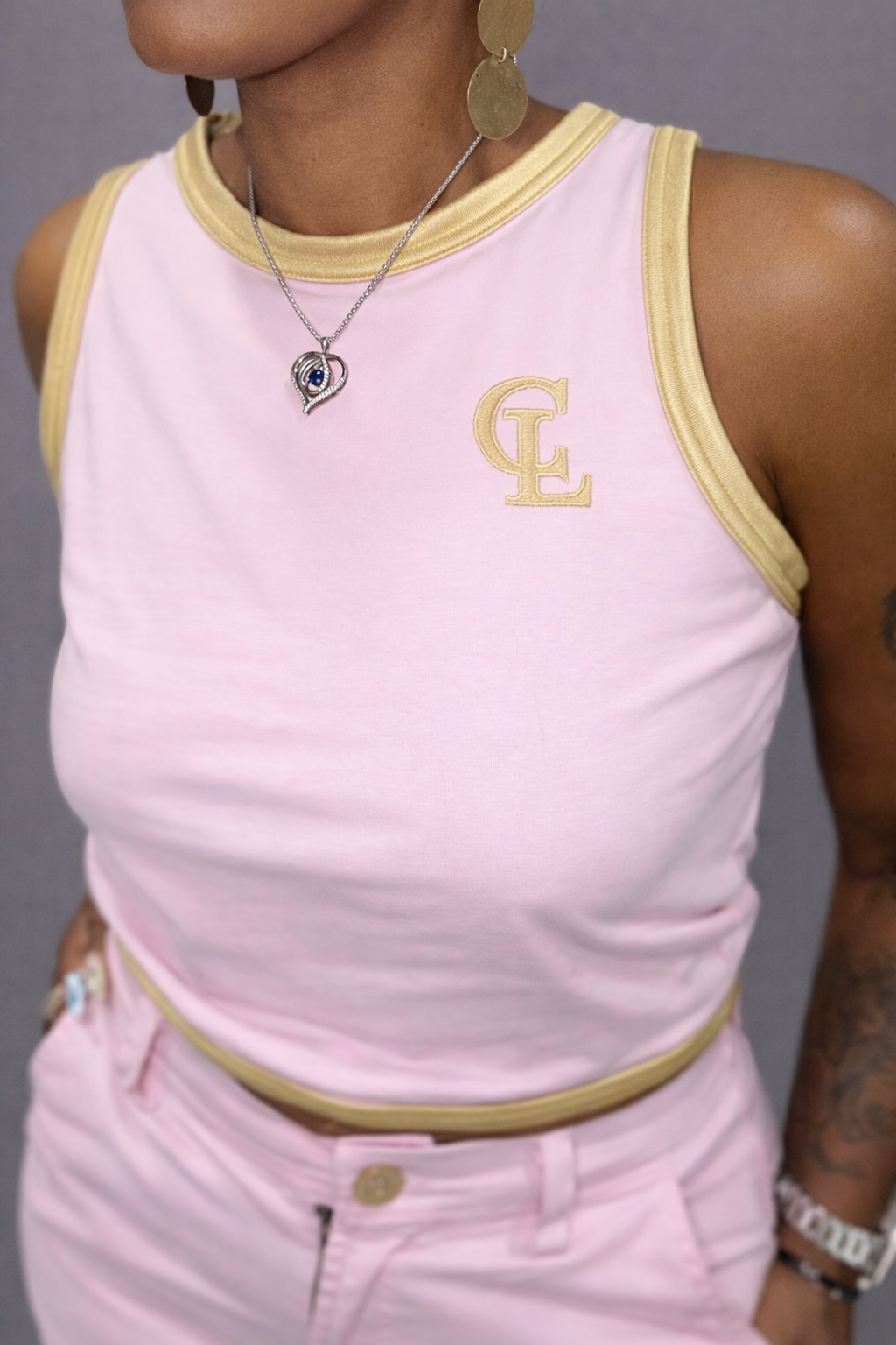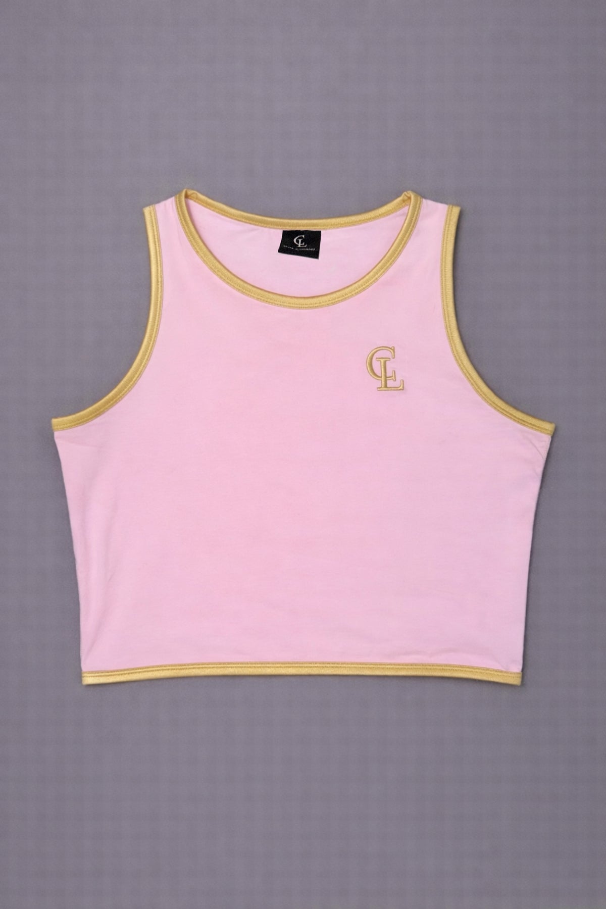 Designed as the perfect complement to our Gold Piping Shorts, this crop tank blends softness, stretch, and polish. Crafted from a jersey cotton-lycra blend, it offers a smooth, breathable feel with just enough structure to hold its shape. Gold piping frames the neckline and arm openings, while gold embroidered branding adds a refined signature finish.