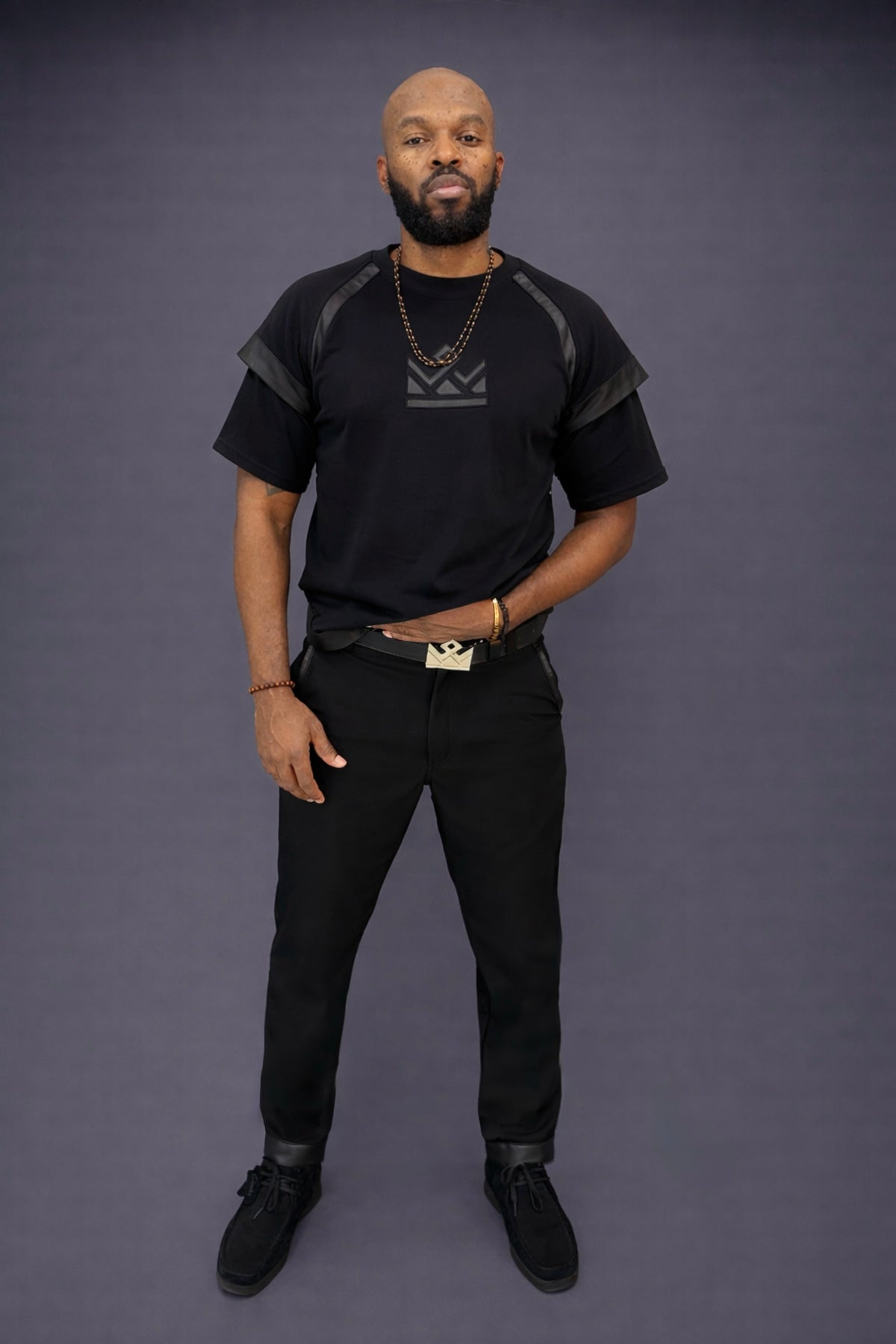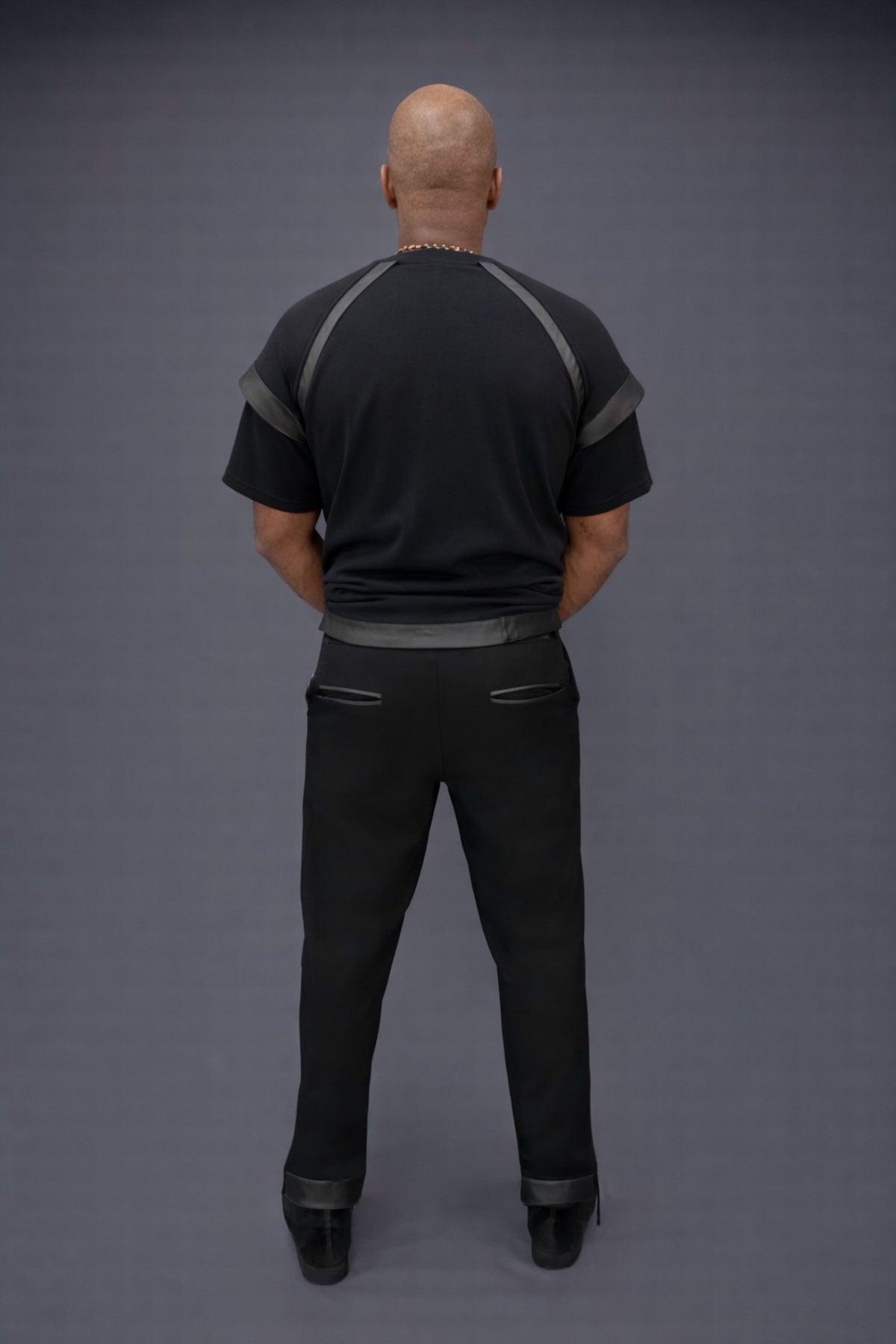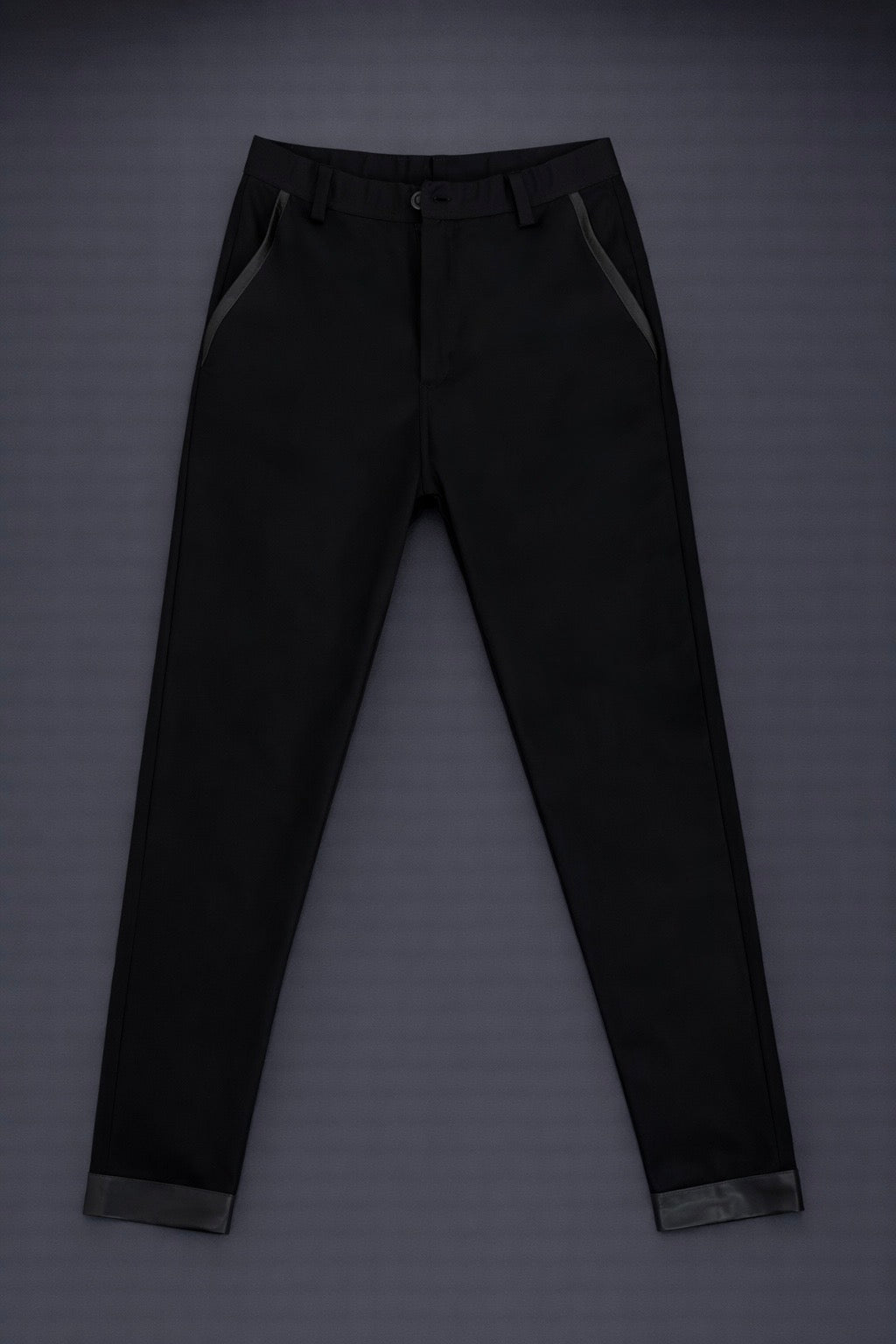 A tailored essential built for movement, this pant combines stretch micro fabric with leather detailing for a sharp, elevated finish. Designed to hold structure while staying flexible, it delivers a modern silhouette that transitions effortlessly from casual to dressed.