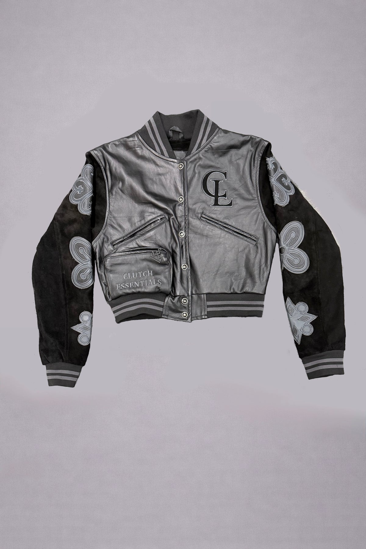 Finished in classic black with gunmetal accents, this jacket is a true Clyde Lourdez staple—timeless, intentional, and commanding.