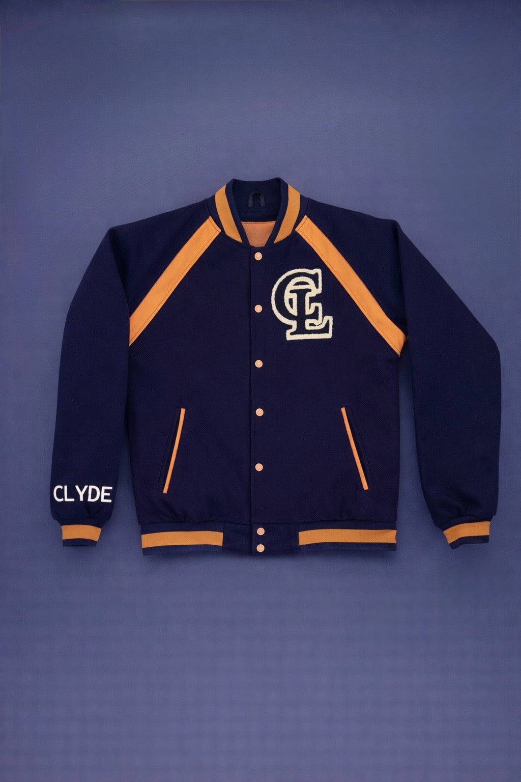 A refined evolution of the original Clyde varsity, this piece pairs premium wool structure with top grain leather detailing and signature Clyde iconography. Designed as a statement outer layer, it balances bold branding with tailored proportions, delivering a modern varsity silhouette elevated through material contrast and custom hardware.