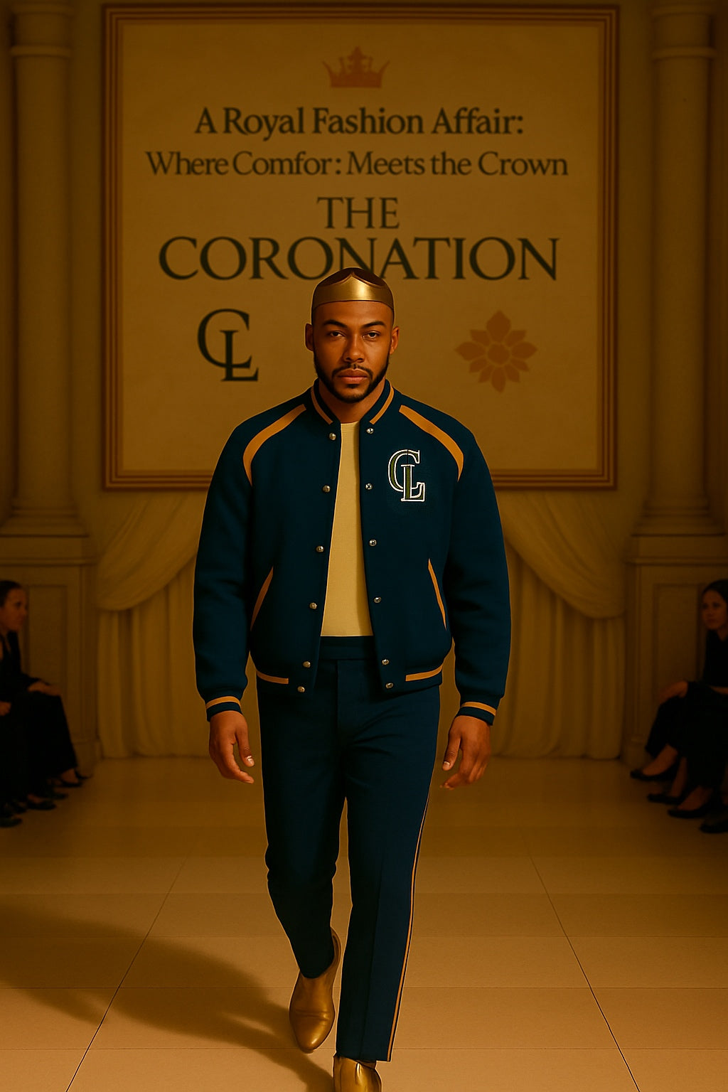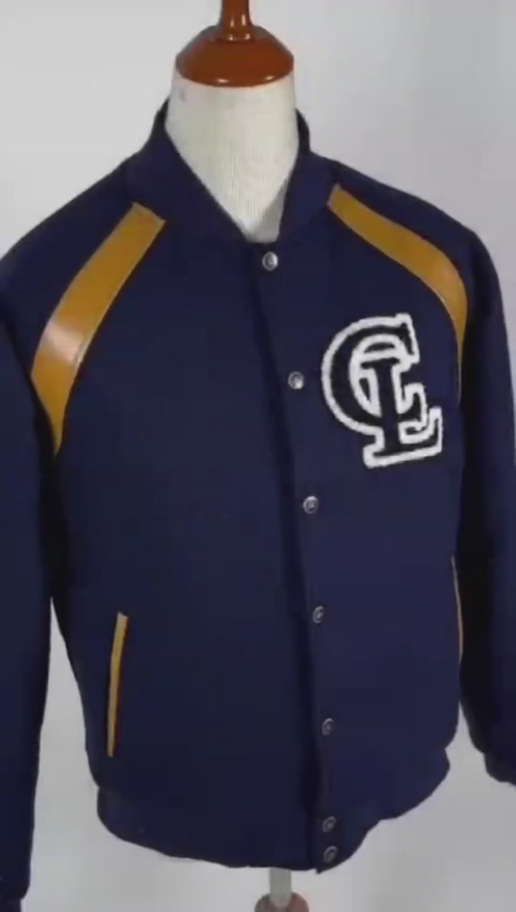 Wool varsity jacket with leather details around shoulders and pocket. Embroidered CLYDE on wrist